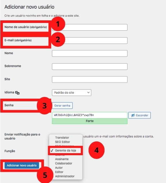 Para adicionar um novo usuário no pelo painel do Woocommerce só é possível para usuários Administradores. Se você é um usuário Administrador siga esse passo a passo.