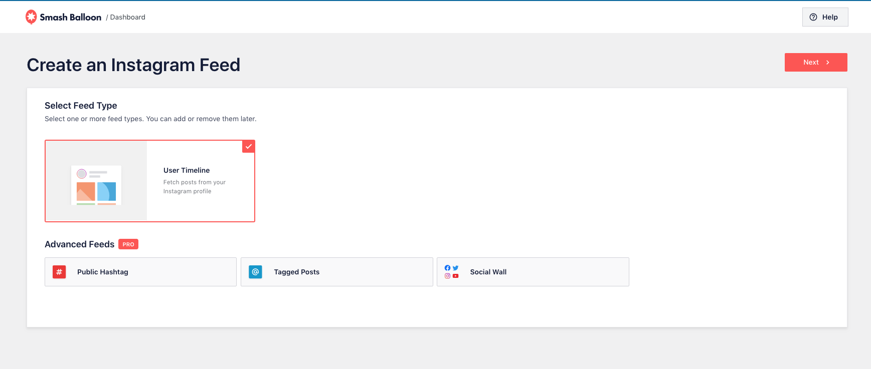 2) Selecionar a opção “User Timeline” e clicar em “next”