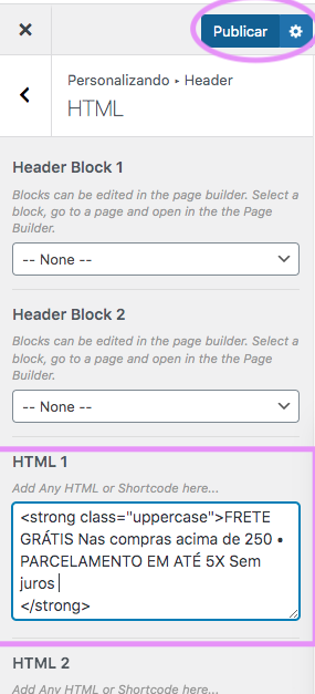 Como trocar a frase de frete grátis no top bar na sua Loja WooCommerce com Flatsome