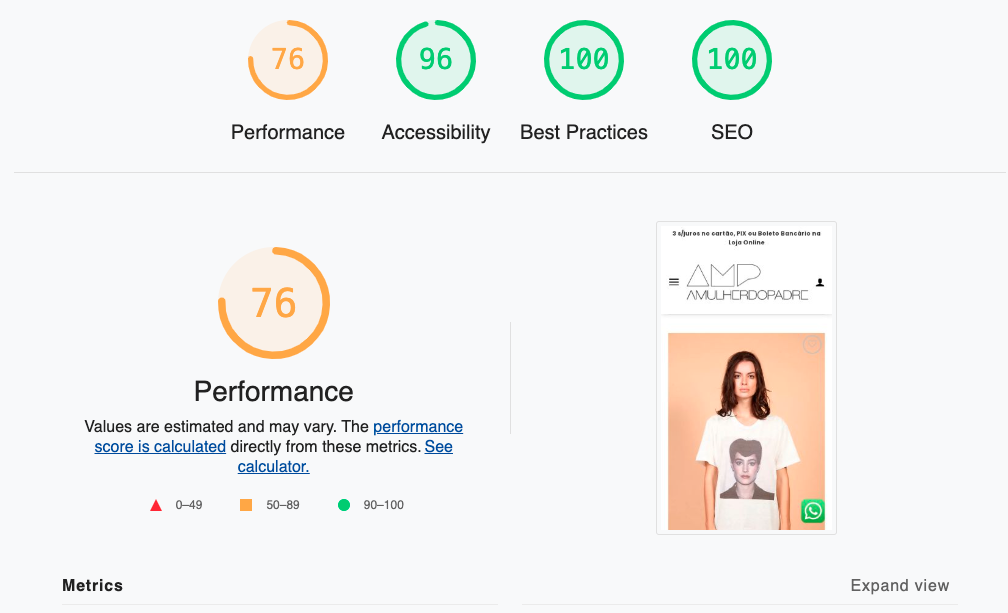 Priorizamos todos os pontos críticos que afetavam a Performance e Acessibilidade das páginas de produto. E o resultado foi instantâneo.