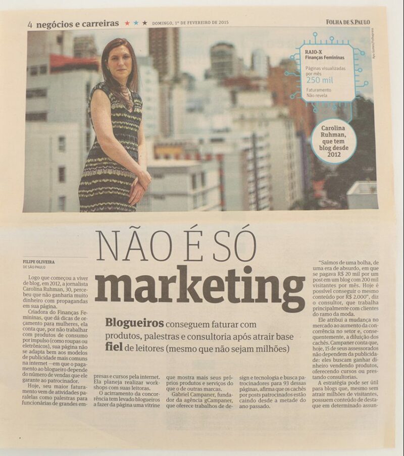 Folha de São Paulo cita Gabriel Campaner sobre Blogs de Finanças e universo feminino